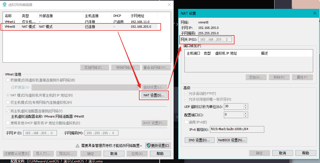 DNS那里可以设置为自己虚拟机的网关IP,查看方法如下