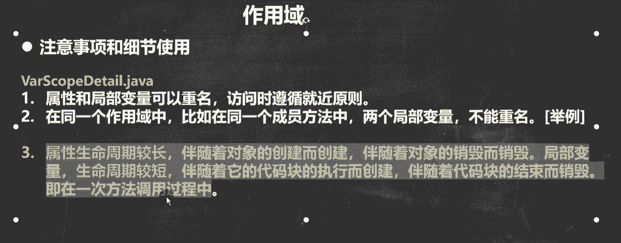 // 也就是说在成员方法里面定义的变量只能在该成员方法中使用
