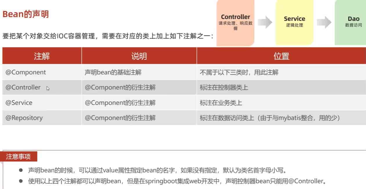 优先使用 @RestController 、@Service、@Repository 这三个注解