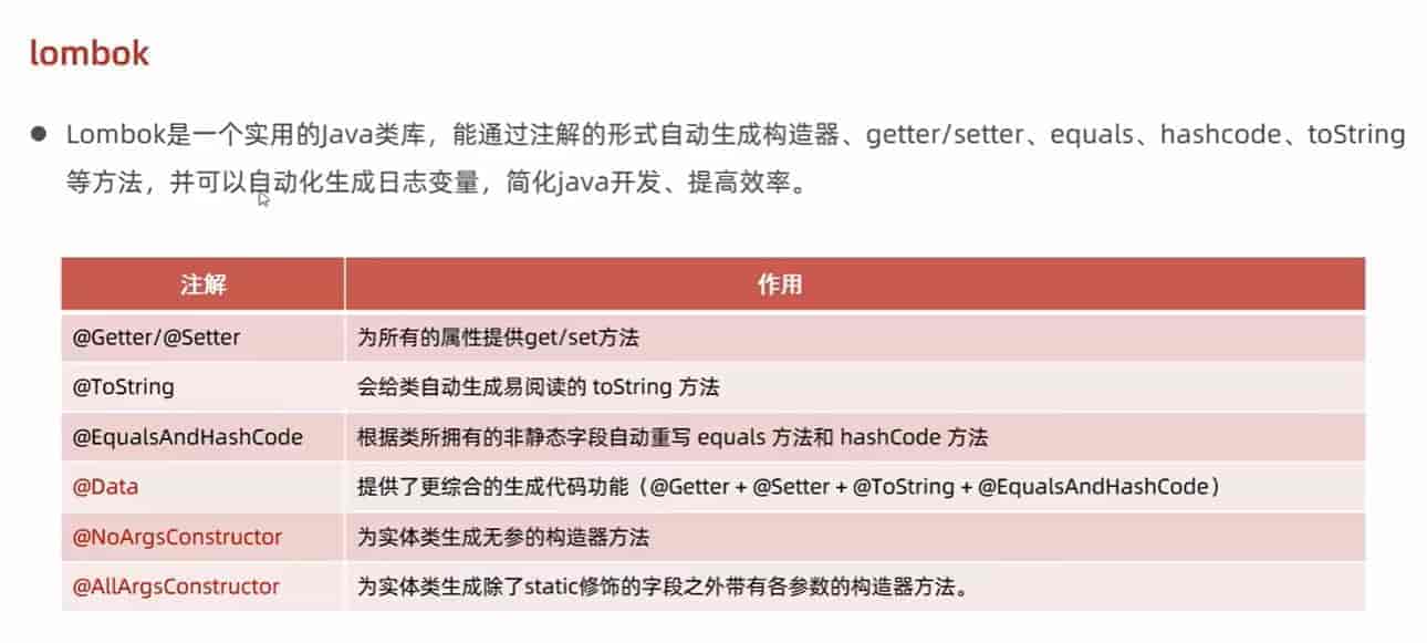 @Data // 相当于代码块中的属性都拥有set、get、toString、equals和hashcode方法