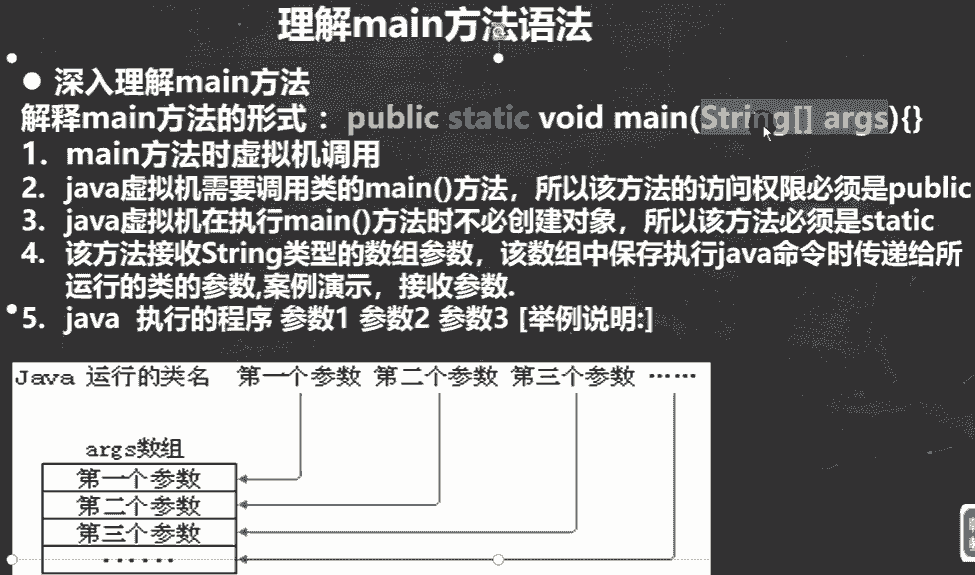 类型的一维数组,在执行运行命令时,运行命令后面输入的内容将传到args