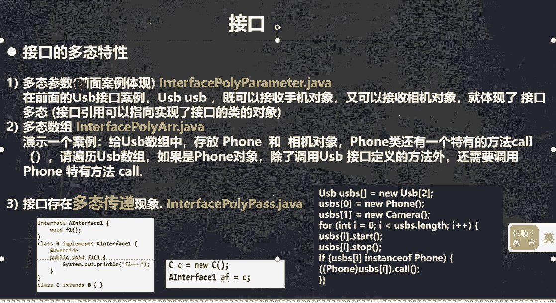 接口和抽象类一样,如果你要调用接口,那么你就要实现该接口的所有抽象方法