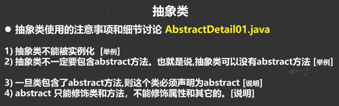 关键字来修饰该方法),方法被设置为抽象方法时该方法所在的类也必须设置为抽象类(用 abstract
