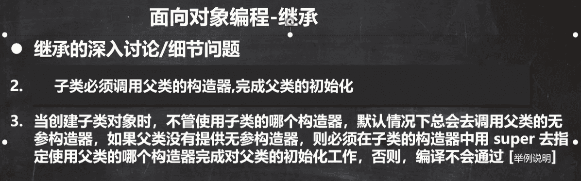 - 调用子类的构造器时会优先调用父类的无参构造器