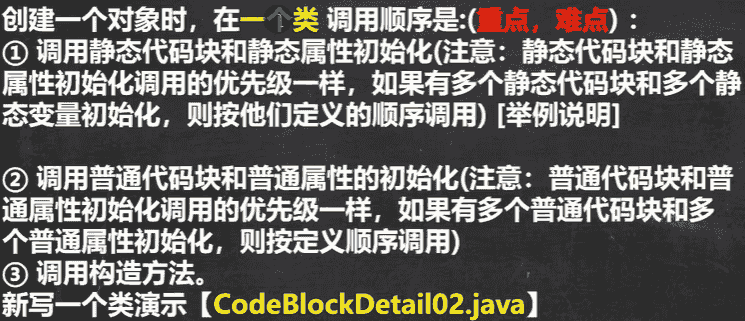 关键字,所以调用子类的构造器时则会优先调用父类中的构造器,在调用构造器之前会优先调用代码块,所以当我们调用子类时则会优先调用父类中的代码块,其次在调用父类中的构造器,然后在调用子类中的代码块,最后在调用子类中的构造器,这样以此类推调用静态成员(静态方法和静态变量)时,普通代码块不会被调用,但是静态代码块会被调用