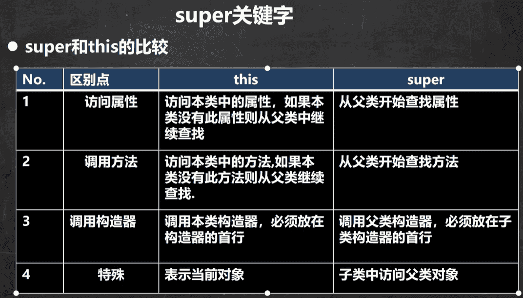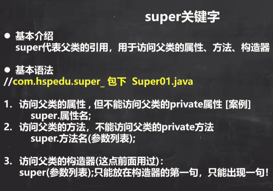 关键字的方法)之中,代表的是当前正在调用这个方法的对象super