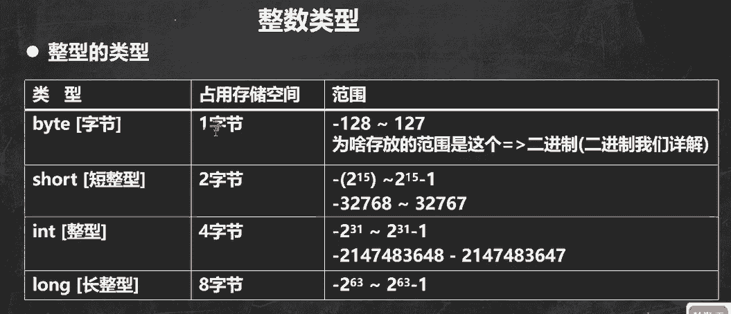 记个大概,byte在负128到正127之间,short在正负3万两千以内,int在正负21亿以内