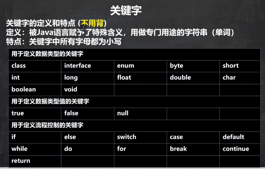 关键字就是在Java中已经被定义好的,所以不能作为标识符使用