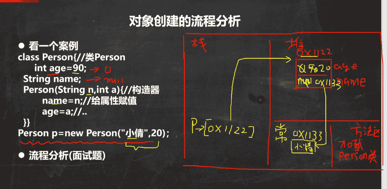 默认是0,name默认是null(就是没有地址)) - 在显示初始化,也就是类里面的属性赋的值(