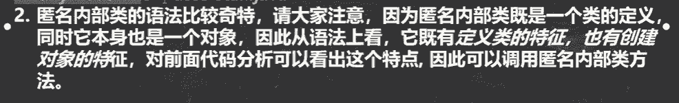 匿名内部类和继承一样,使用调用的对象里的方法时,也是用super来调用