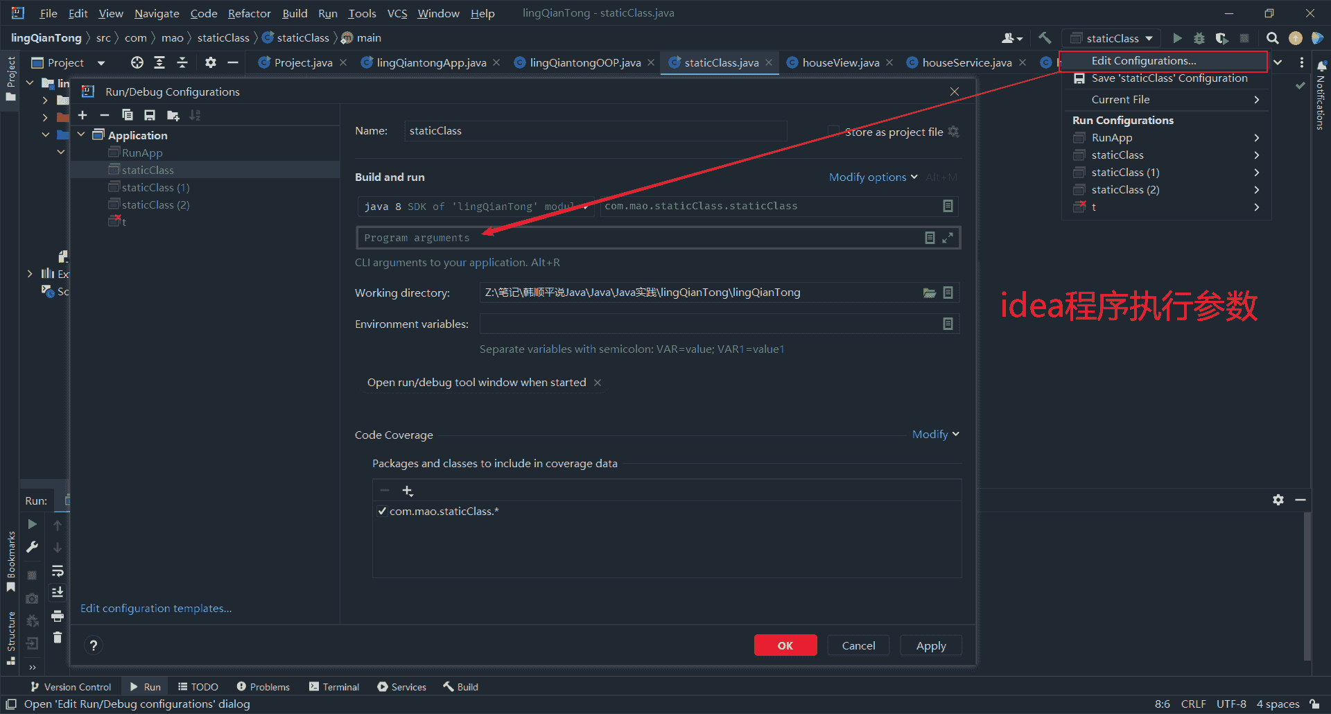 类型的一维数组,在执行运行命令时,运行命令后面输入的内容将传到args