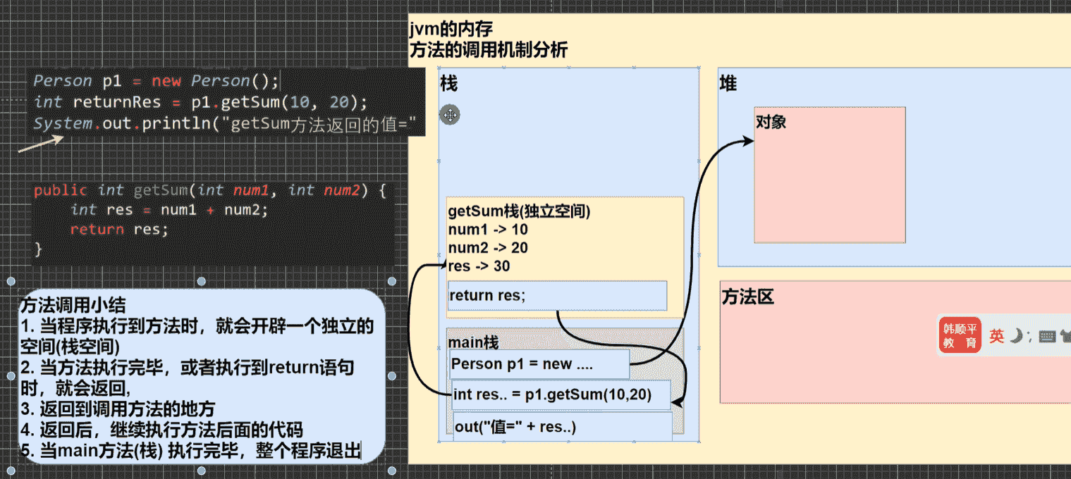 每个方法在内存中相当于是一个小栈,一个独立的空间