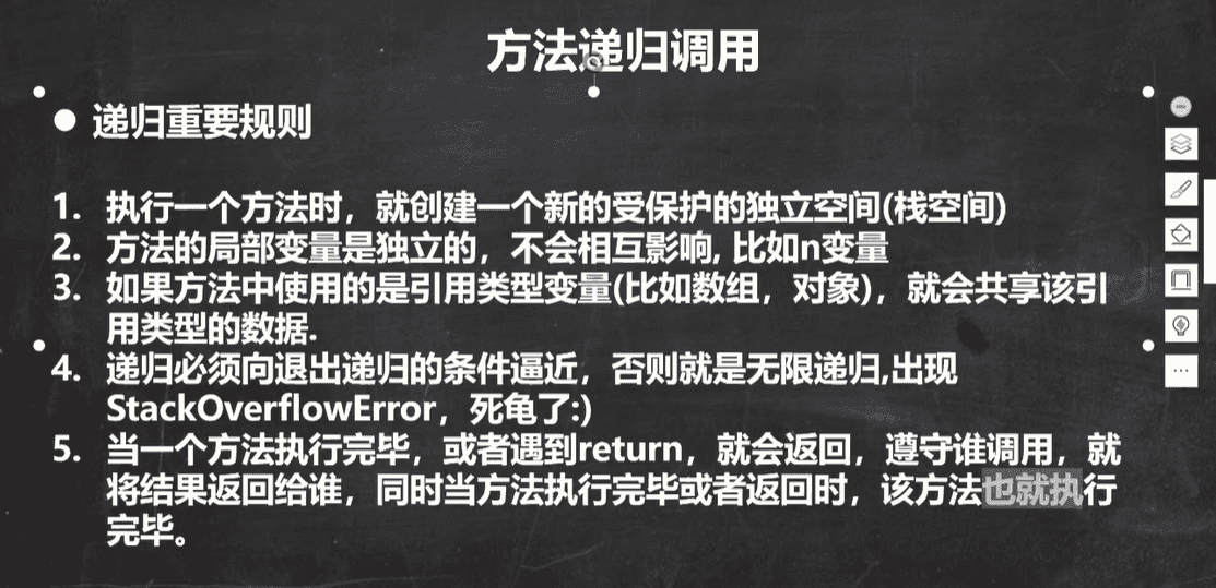 // 并且返回 1 到上一个栈中,上一个栈在返回到上上一个栈,直到所有栈运行完毕之后,最后的结果才返回到主方法中