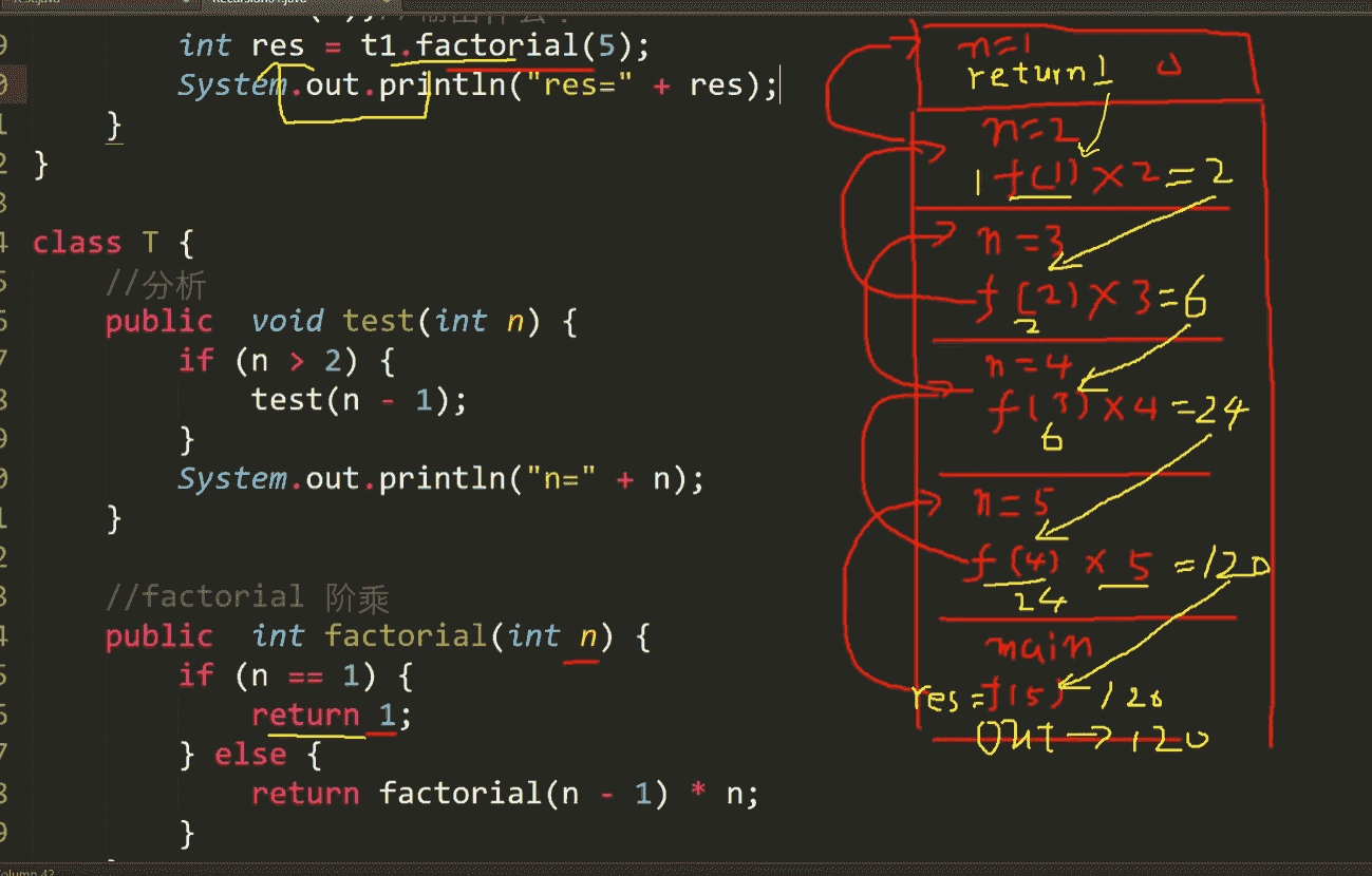 // 如果 n 大于 2 则调用 Recursion 方法,并且 n - 1