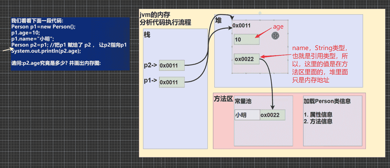 类型的对象会先指向堆中的空间,然后堆中的空间在指向常量池的对应的常量- 数据类型的对象的值则是在堆中