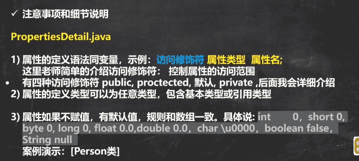 在类与对象中,属性的默认值和该属性数组的默认值是一致的