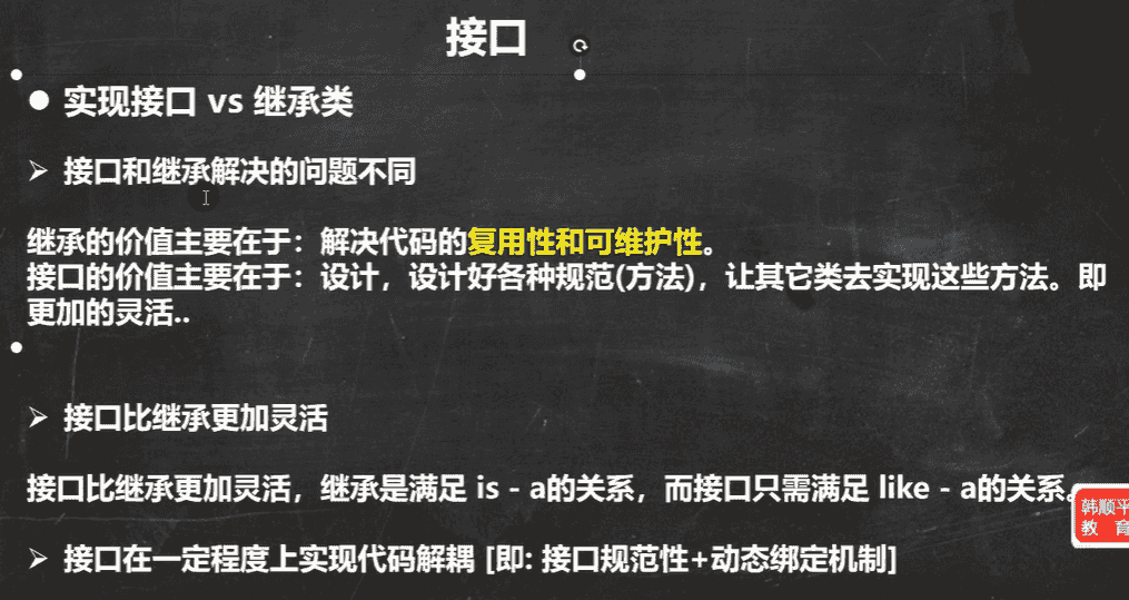 因为Java是单继承机制,所以接口就相当于是继承的扩展(一个类只能继承一个父类,但是可以实现多个接口)