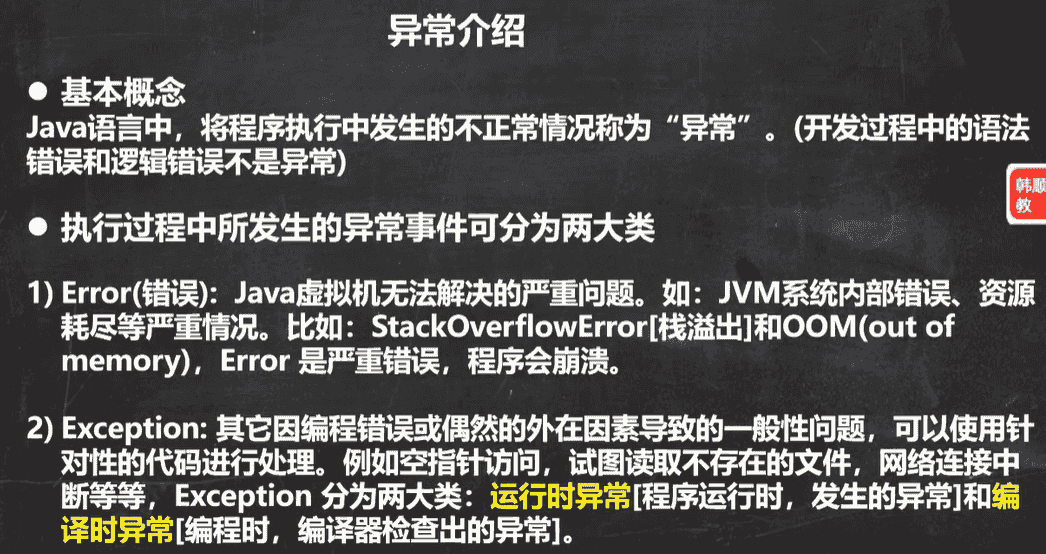 有时候出现了一个不算致命的问题,就导致程序崩溃,这样程序的健壮性就不是很好,所以Java设计者就提供了一个异常处理机制来解决这个问题