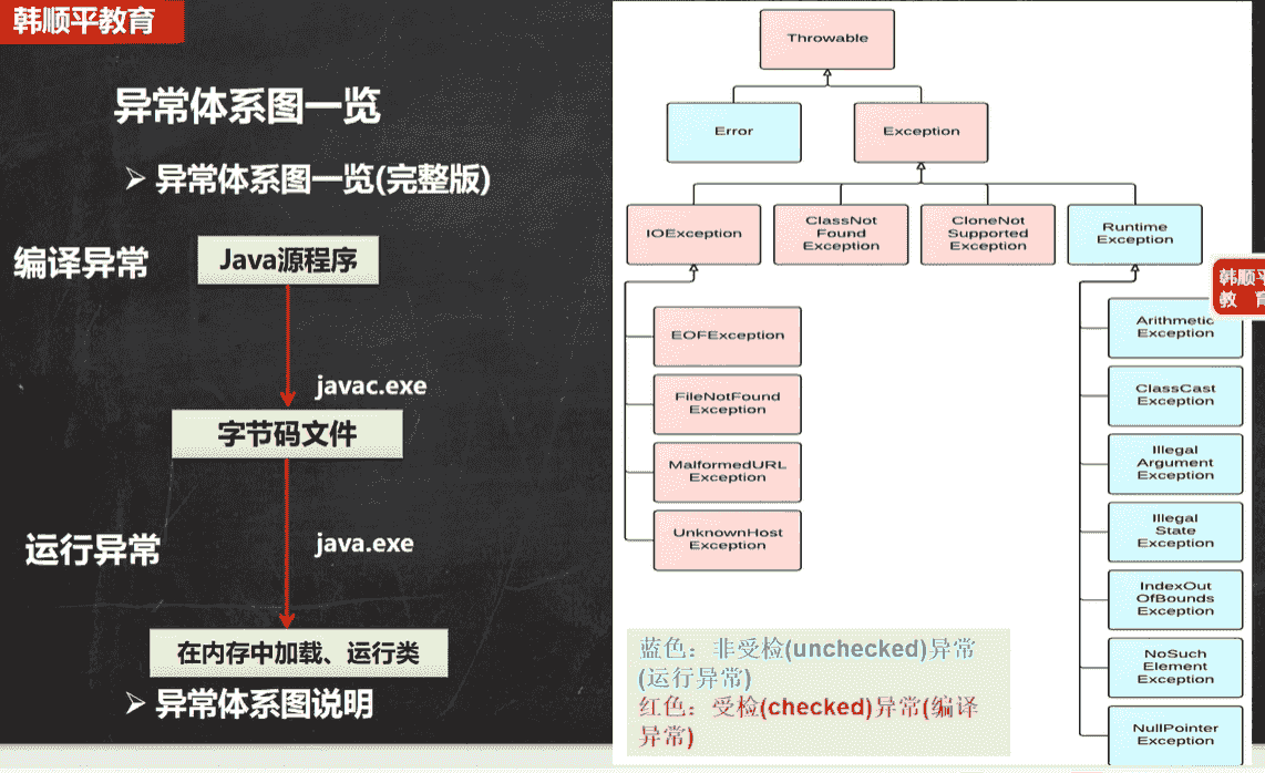 编译异常就是在编译时的异常,运行异常就是在运行时的异常