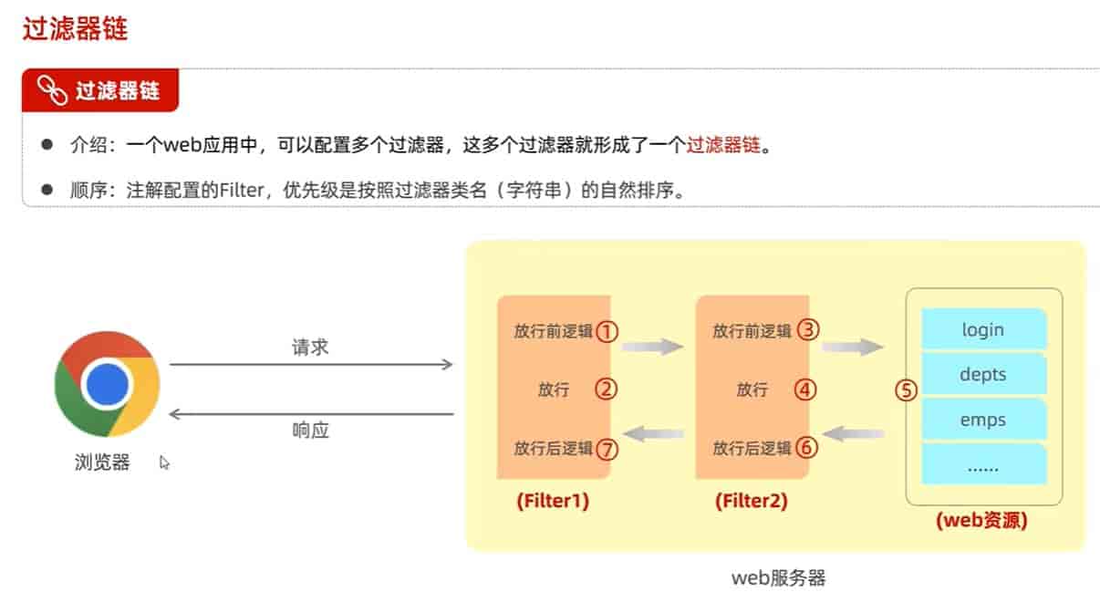 过滤器一般完成一些通用的操作,比如:登录校验、统一编码处理、敏感字符处理等