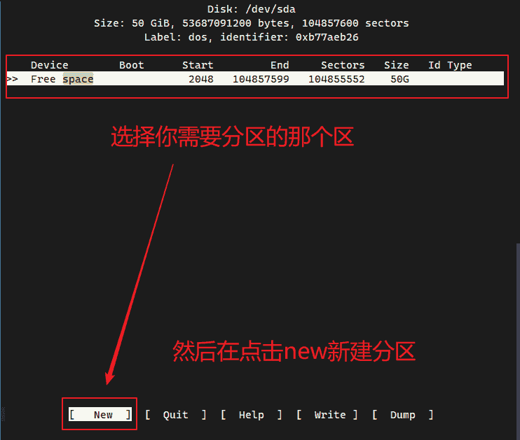 就是自己的磁盘名称(如果你有多个磁盘则需注意磁盘名称,以免后面分错区),后面还有磁盘的容量